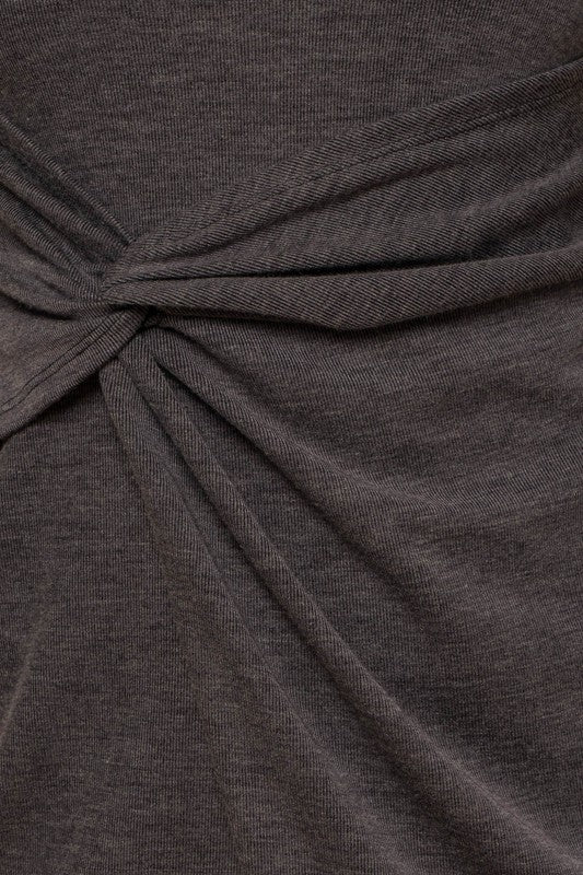 A stylish and versatile addition to your wardrobe. This high-low dress features a sleeveless design and a twist wrap detail that adds a touch of modern elegance to the look. The ribbed fabric adds texture and dimension, enhancing the overall appeal.